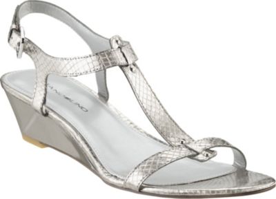 Description of Bandolino WomenS Gurrey TStrap Wedge Sandal Pewter 9 1/2